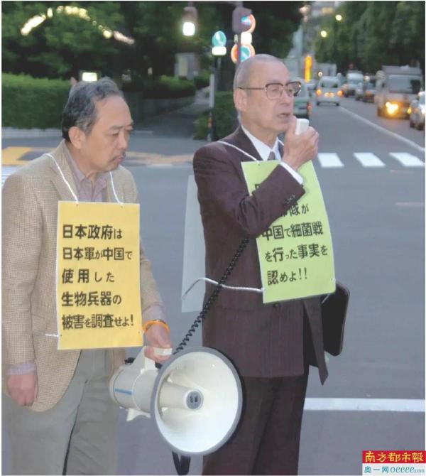4.土屋公献(右)在东京街头向日本民众宣讲细菌战。本版为受访者供图